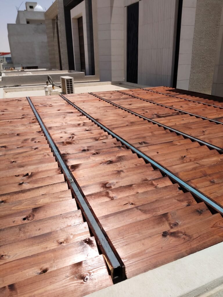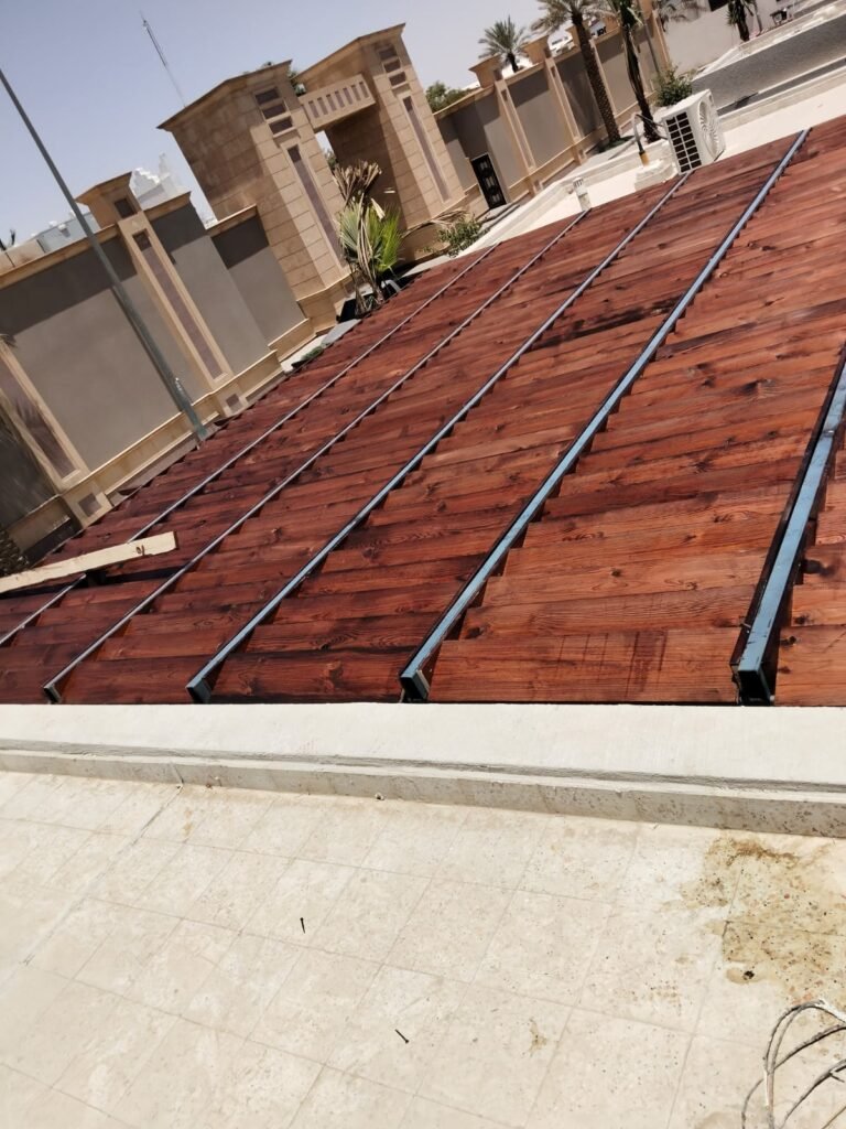 - الخشب المعالج: مزيج بين بودرة الخشب والبلاستيك، ويتميز بمقاومته للرطوبة والنمل الأبيض وعدم حاجته للصيانة المستمرة.