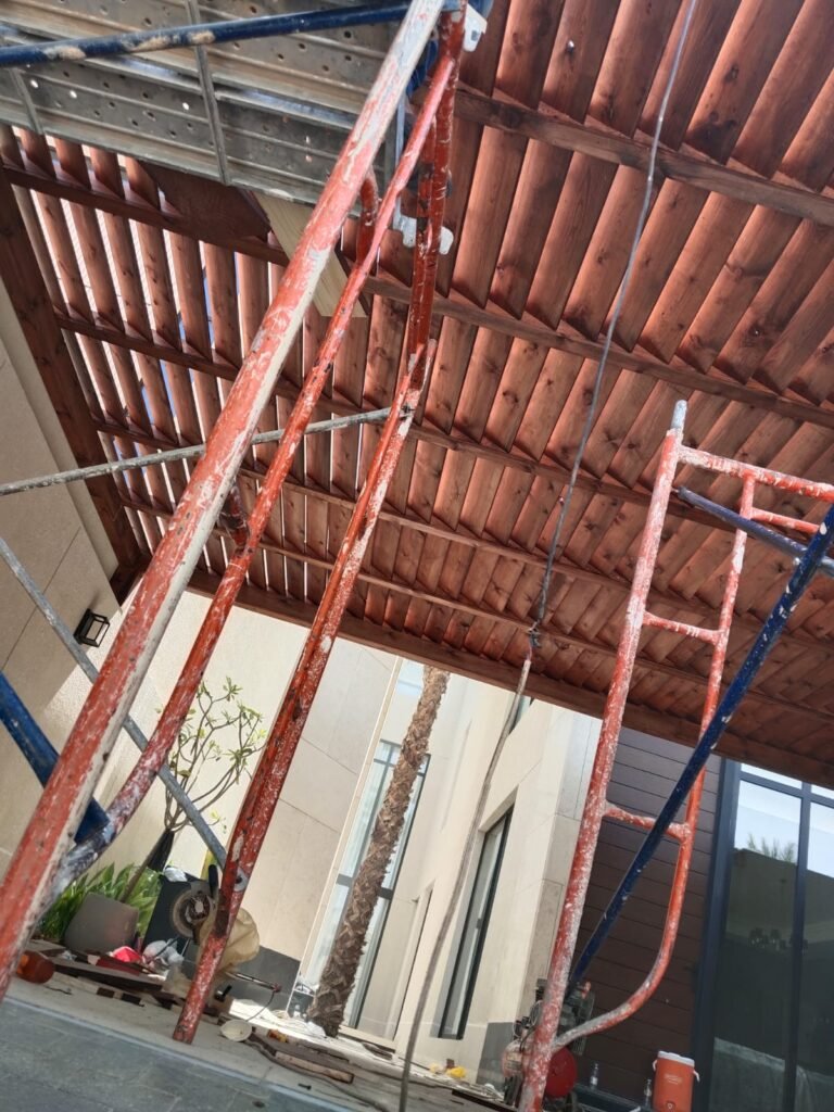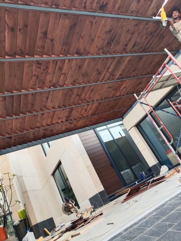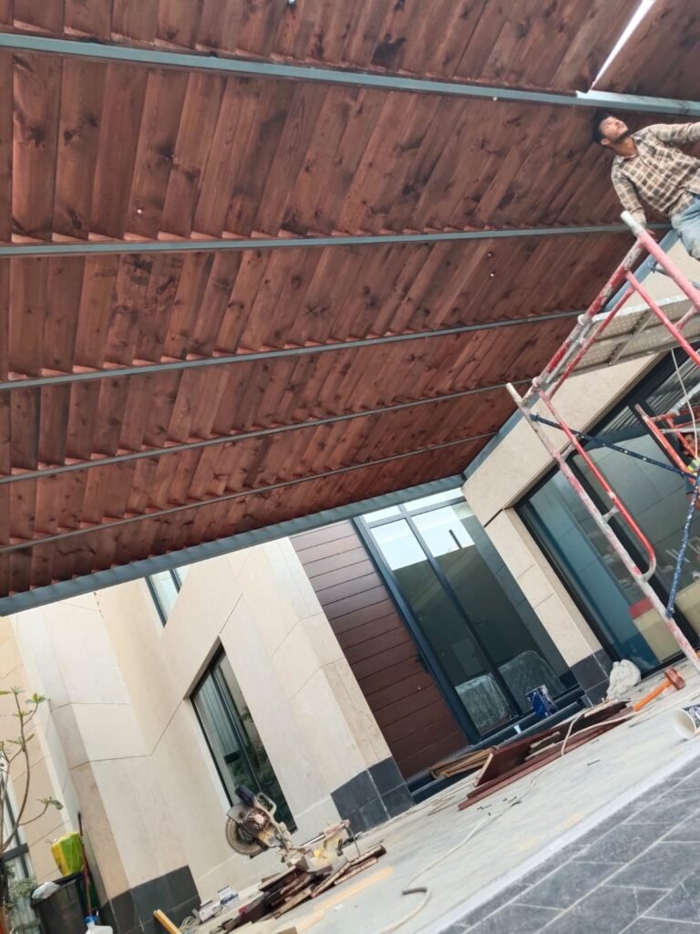 - الخشب الطبيعي: مثل خشب السويدي أو التيك، ويتميز بجمال طبيعي أخاذ.