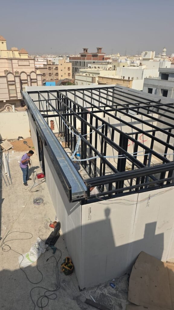 - العزل الحراري والصوتي: في البيئات الخليجية، يعتبر العزل أمراً حيوياً لتقليل تكاليف التبريد. تأكد من أن المقاول يقدم حلول عزل فعالة مثل ألواح الساندويتش بانل).