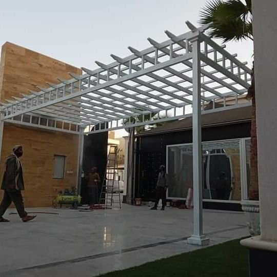 تخلق مساحة استرخاء رائعة في حوش المنزل. غالباً ما تكون خشبية (برجولات) أو من القماش الفاخر لتوفير ظل بارد وشكل عصري.