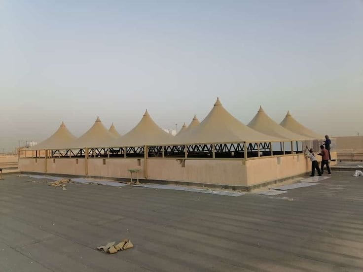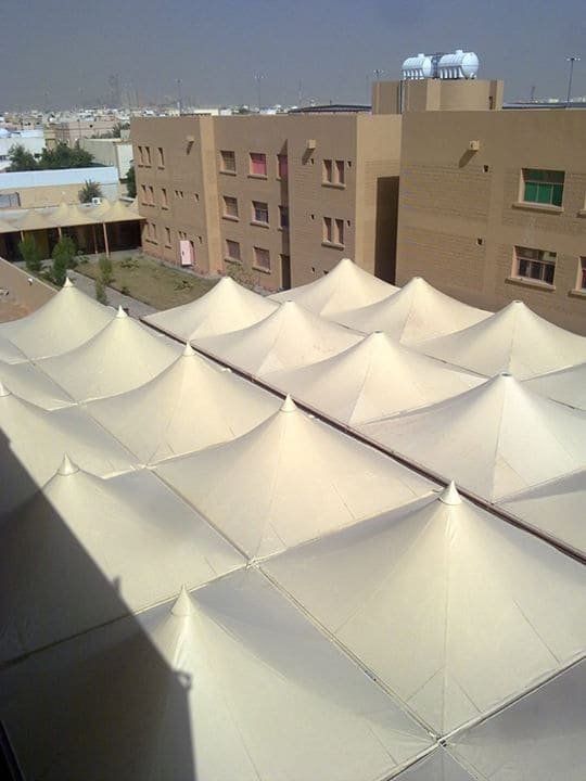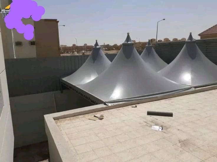 - مظلات PVDF: وهي النسخة الأكثر تطوراً، مقاومة للحرائق والاتساخ، وتستخدم غالباً في المشاريع الكبرى.