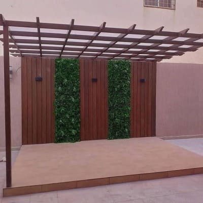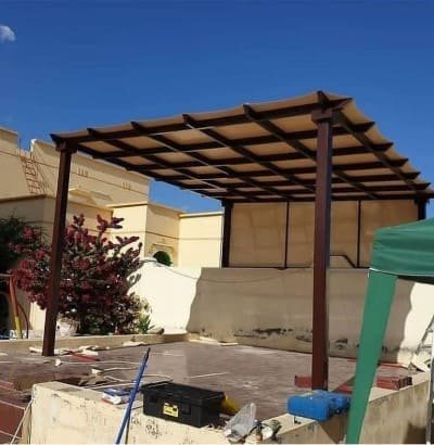 - برجولات حدائق حديد: نوفر تصاميم برجولات حديدية تحاكي شكل الخشب الطبيعي (الدهان الخشبي) لتعطيك لمسة الطبيعة مع قوة المعدن.